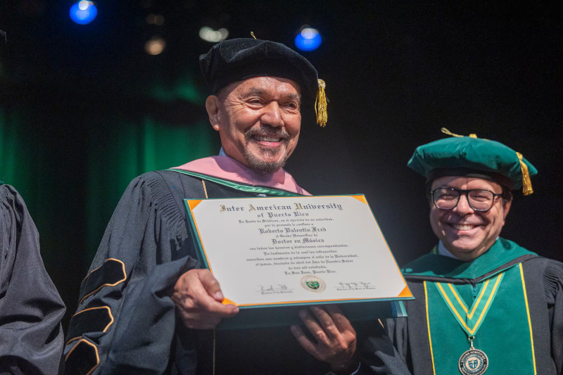 (RCA – 16/04/2026) Roberto Valentín Fred, mejor conocido como Bobby Valentín, recibió uno de los máximos honores que una institución educativa pueda ofrecer, al hacerse merecedor de un doctorado Honoris Causa, que reconoce su larga carrera en el mundo de la música. El Rey del Bajo, como también se le conoce, es nativo de Orocovis, Puerto Rico, y una figura legendaria de la salsa.