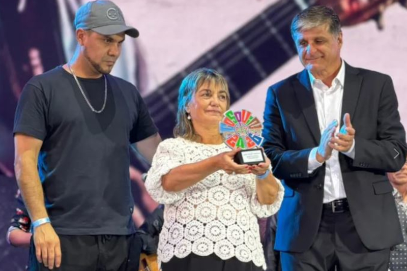 La organización del Festival hizo entrega, además, de un reconocimiento que fue entregado a la compañera de Musha, Miriam Talone, quien recibió los merecidos aplausos a la carrera de Musha junto a la estatuilla del Cosquín 2026.