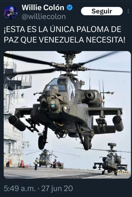 Willie Colón persistió pidiendo una invasión militar gringa a Venezuela y hasta grabó temas contra el presidente Maduro.